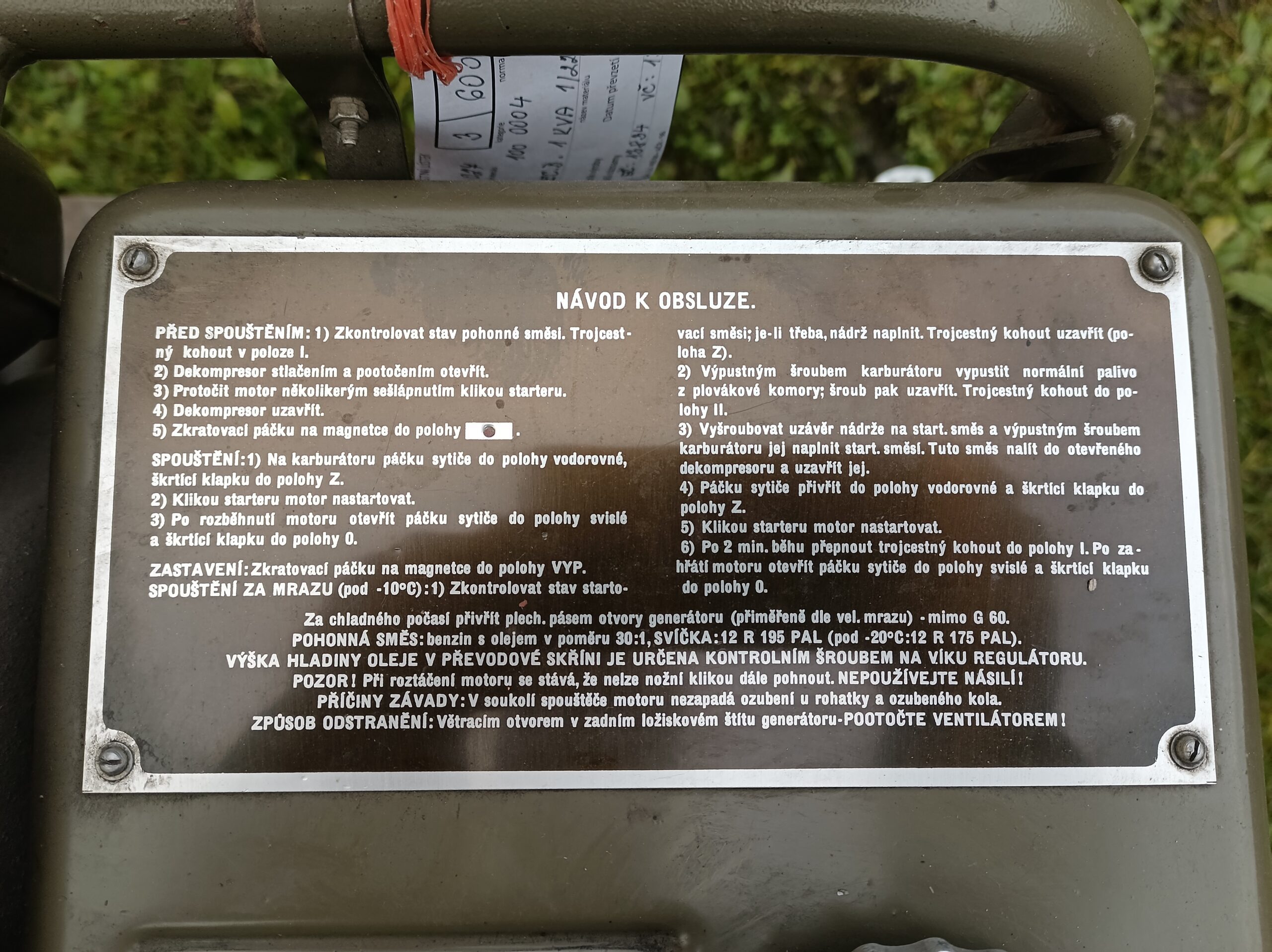 Motor: ZB 5a benzínový dvojtaktní – spouštěni nožní
